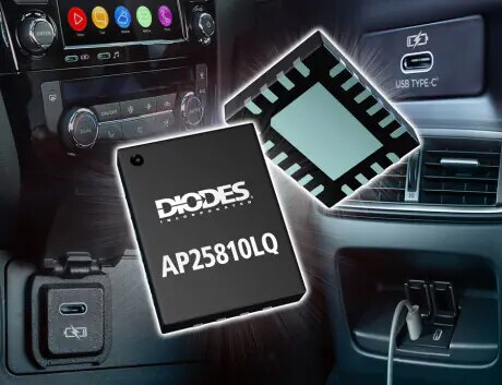 The AP25810LQ is an automotive-compliant USB Type-C® downstream-facing port (DFP) controller with an integrated 3A-rated VBUS power switch. This VBUS switch has a 30mΩ on resistance with two selectable fixed current limits that align with the USB Type-C current levels.