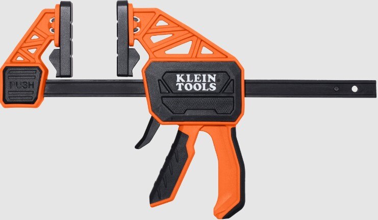 Klein Tools Speed-Klamps are engineered for fast, reliable clamping in a wide range of professional and DIY applications. Designed with durable I-beam construction and quick one-handed operation, these clamps deliver powerful holding strength while maintaining ease of use. Available in multiple sizes and clamping forces, Speed-Klamps are ideal for securing materials during cutting, gluing, welding, and assembly tasks. Each clamp features removable pivoting V-pads that conform to angled or round stock, ensuring a secure grip without damaging surfaces. The dual-purpose design allows the clamp to function as both a spreader and a traditional clamp, enhancing its versatility on the job site or in the workshop. With load capacities ranging from 150 pounds to 300 pounds, Speed-Klamps provide the strength professionals demand and the convenience they appreciate. Whether users are working with wood, metal, or composite materials, Klein Tools Speed-Klamps offer a dependable solution for holding workpieces firmly in place. Their extra-long, non-marring pads protect surfaces while delivering consistent pressure. Replacement pads and pivots are also available, extending the life and functionality of each clamp.