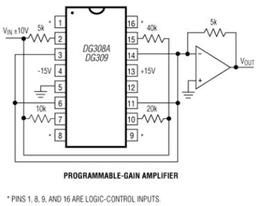 Both parts feature a 44 V maximum breakdown voltage rating that allows 30 V peak-to-peak switch-off blocking capacity. The DG308A/DG309 can be used with split supplies (±5 V to ±20 V) or a single positive supply (+5 V to +30 V), while retaining CMOS-logic-compatible inputs.