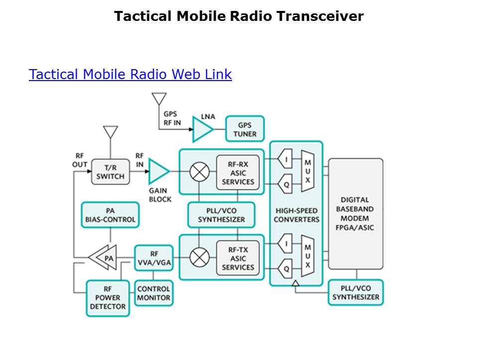 This is a typical tactical mobile radio block diagram. Multi-band tactical radios are migrating to a software defined radio platform and need to cover a wide RF input range spanning 30MHz to 870MHz. In some applications the channel spacing can extend down to 12.5kHz with 2.5kHz frequency increments, and up to 10MHz to support Long Term Evolution.